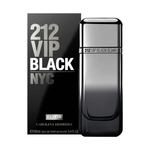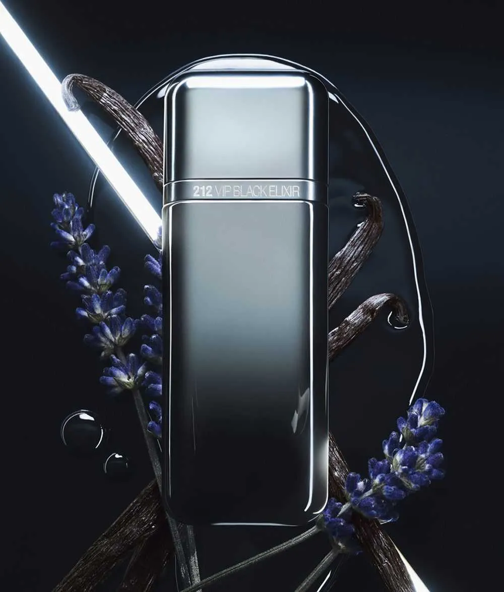 212 VIP Black Elixir Eau de Parfum es una fragancia masculina sofisticada y potente. Abre con lavanda negra, pomelo y enebro; evoluciona hacia regaliz negro, azafrán y flor de azahar; y culmina en una base cremosa de vainilla negra, benjuí y almizcle.