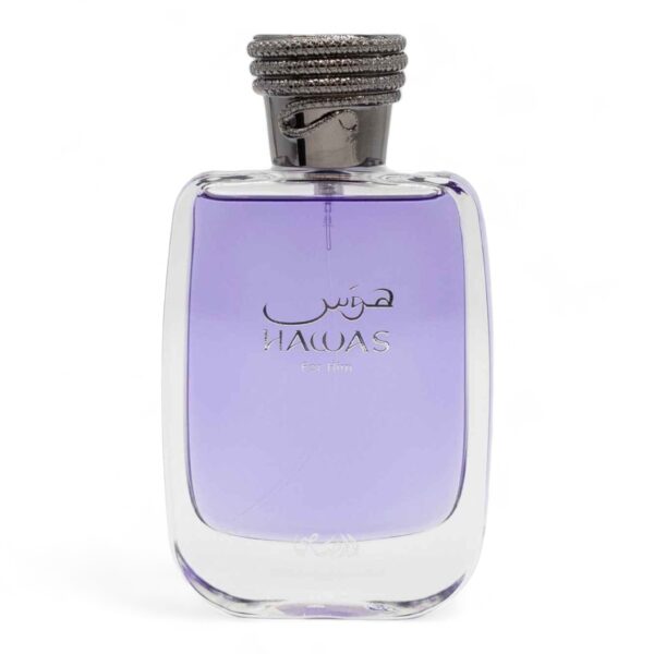 Hawas for Him de Rasasi es una fragancia de la familia olfativa Aromática Acuática para Hombres. Hawas for Him se lanzó en 2015. Las Notas de Salida son manzana, bergamota, limón (lima ácida) y canela; las Notas de Corazón son notas acuosas, ciruela, flor de azahar del naranjo y cardamomo; las Notas de Fondo son ámbar gris, almizcle, pachulí y trozos de madera a la deriva.